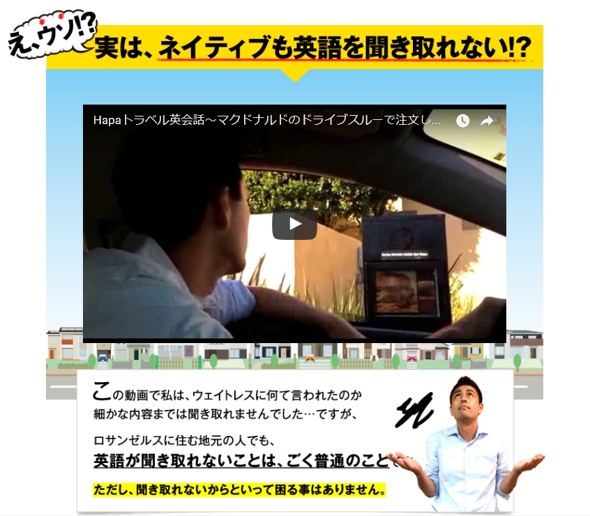 この「Hapa英会話」レッスンではアメリカ西海岸を中心とした地域のネイティブ英会話に関して、もやもやを解消するような英会話の疑問にテーマを絞ってレッスンしていますので楽しく勉強を続けられ、Hapaトラベル英会話からのさらなるレベルアップに役立ちます。当サイトの独自特典として「Hapa英会話」VIDEOレッスン動画集を無料でご案内しています。